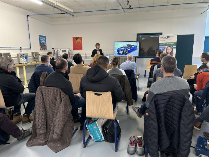 The second part focused on practical demonstrations, including the training container and various H2 models, such as the one previously showcased in Metz during the Franco-German Days. Trainees from the ongoing hydrogen VET program also presented the H2 Mobile Training Lab and other hands-on teaching tools, sparking curiosity and discussion.